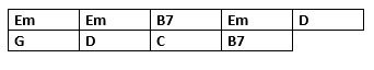 La suite d'accord est : Em, Em, B7, Em, D, G, D, C; B7.