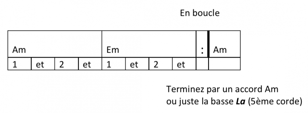 En "boucle" veut dire que vous recommencez toujours la même chose comme un disque rayé : Am, Em, Am, Em etc.