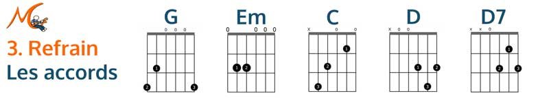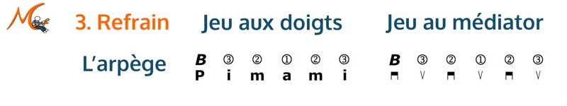 Accompagnement en arpège, à jouer aux doigts ou au médiator.