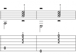 Vous pouvez mettre de la variété en jouant la basse sur un temps, les aigus sur l'autre (pour le jeu au doigt ou au médiator), alterner les basses quand l'accord reste le même etc.