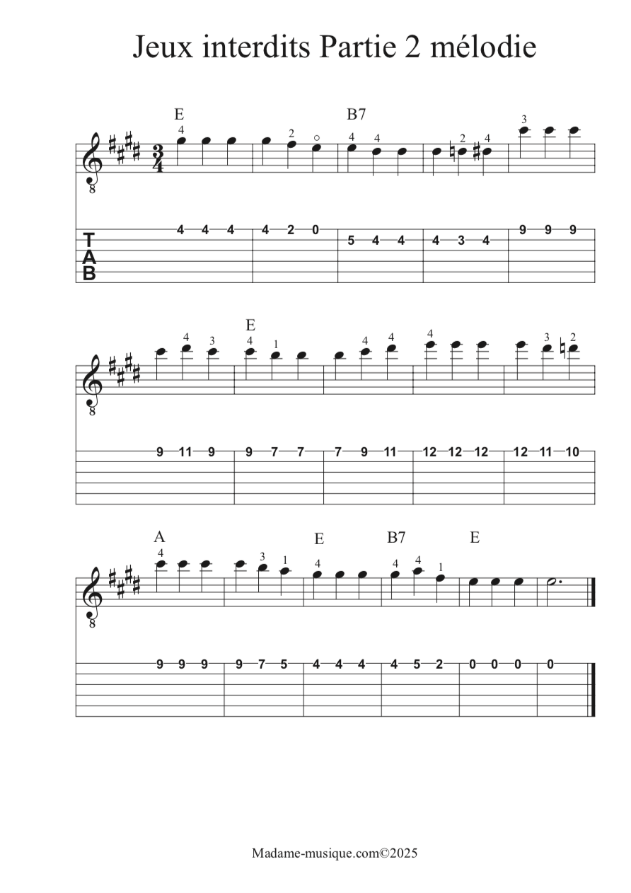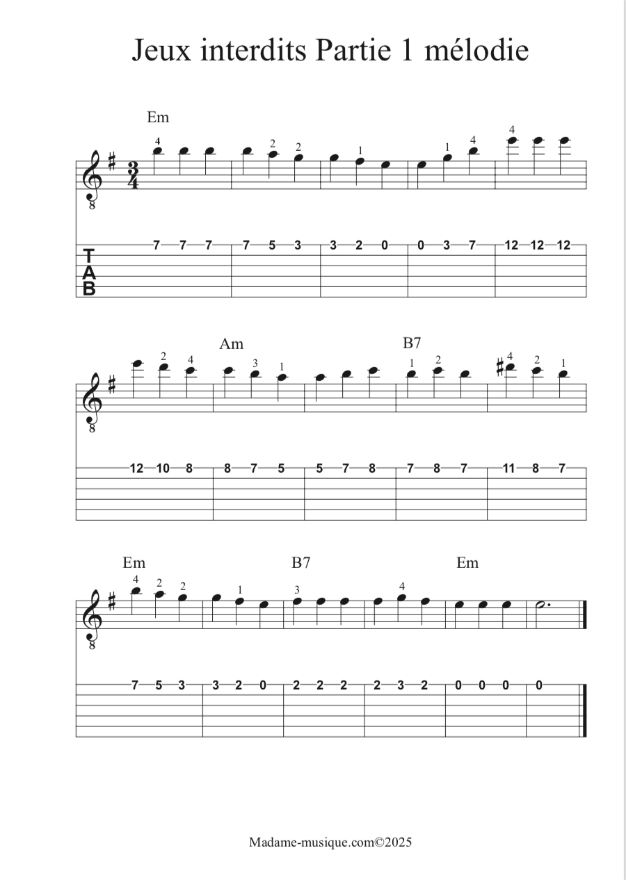 Version guitare classique (mélodie et accompagnement)