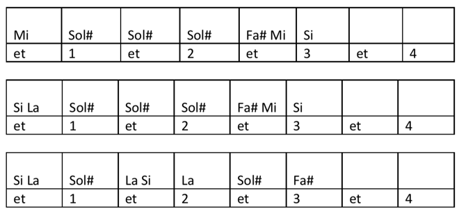 - Si : 3ème corde, 4ème case, 4ème doigt (partie 1) et 2ème corde à vide (partie 2)