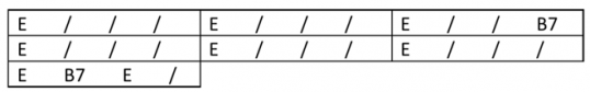 Pour accompagner cette mélodie, vous avez besoin de 3 accords : E, A et B7.
