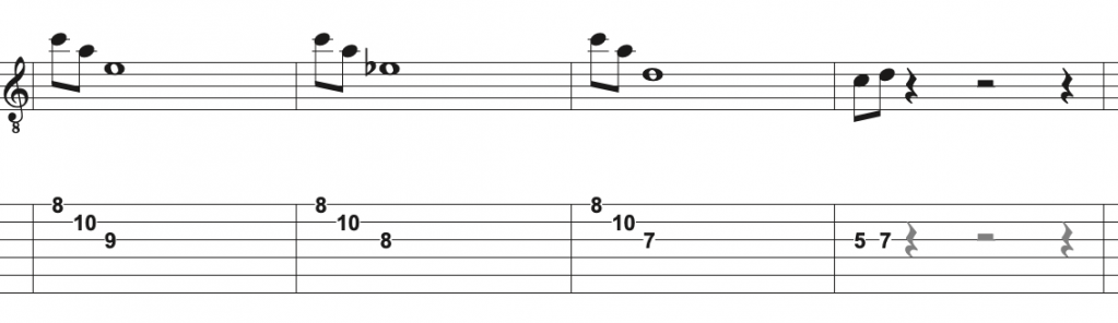 La guitare 1 a 3 parties de 4 mesures à jouer. Pas de grandes difficultés, si ce n'est de rentrer au bon moment !