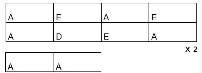 Il y a 2 mesures de décompte. La grille est de 8 mesures avec un accord par mesure : A, E, A, E, A, D, E, A . Elle est jouée 2 fois et puis il y a 2 mesures sur l'accord A. Pour la dernière mesure, vous terminez par un La basse (la 5ème corde jouée toute seule).